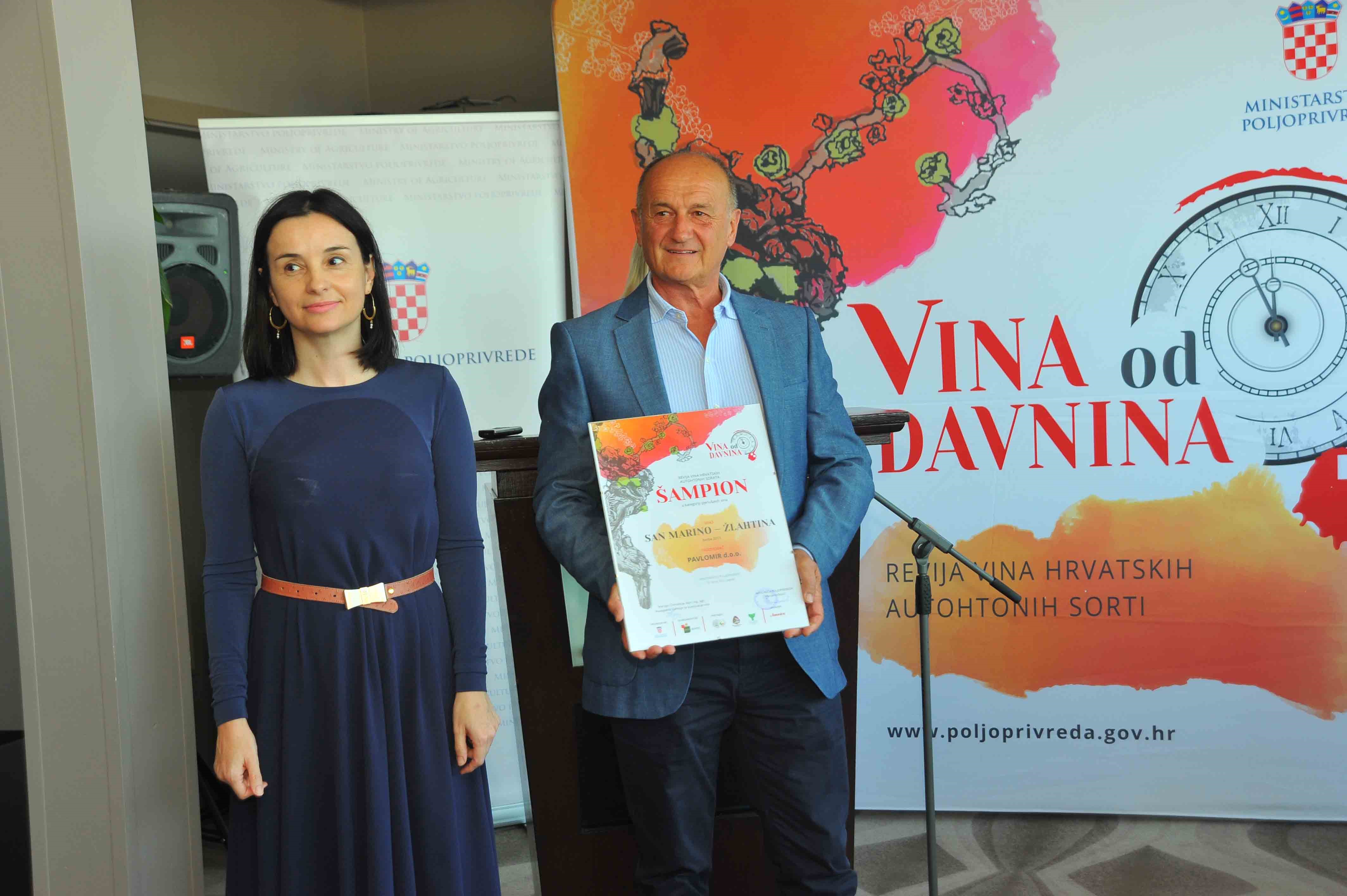 Ministrica poljoprivrede Marija Vučković dodijelila je diplome vinarima za šampionska vina u pojedinim kategorijama u…